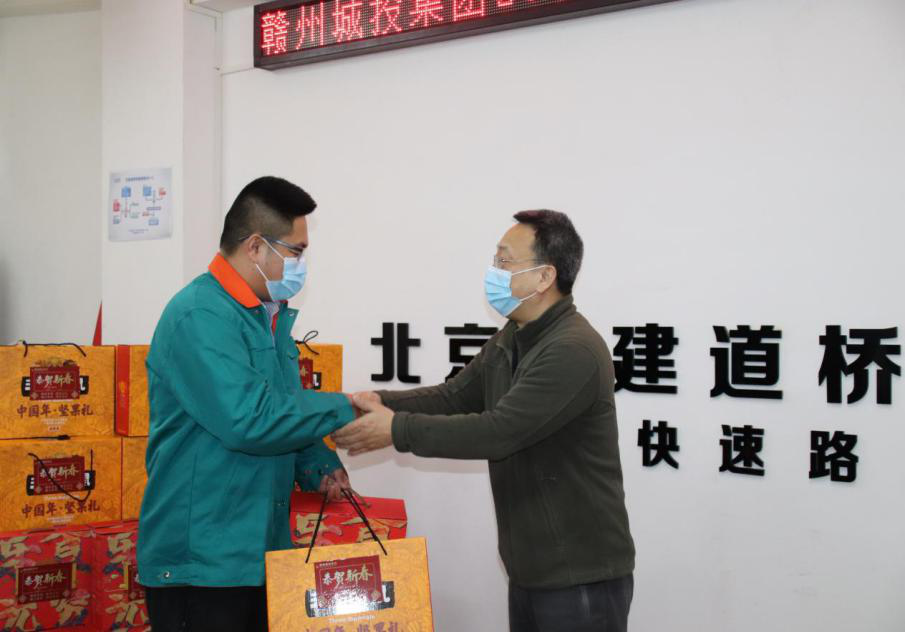 2月9日,贛州城投集團(tuán)開展2021年春節(jié)慰問市域外留贛州過年人員活動,為留在贛州過年的市域外集團(tuán)員工及項(xiàng)目工人送上年貨禮包,讓他們就地過好溫馨春節(jié)。