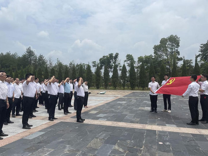 大家首先前往蘇區(qū)時蘇維埃政府工作的模范鄉(xiāng)——長岡鄉(xiāng),領(lǐng)悟中國共產(chǎn)黨人深厚的為民情懷、科學(xué)的思想方法和務(wù)實(shí)的工作作風(fēng)。隨后大家懷著對革命先烈無比崇高的敬意瞻仰了中央蘇區(qū)烈士陵園。在烈士紀(jì)念碑前,整齊列隊,懷著無比崇敬的心情,向革命先烈敬獻(xiàn)花籃,默哀并三鞠躬,深切緬懷革命先烈。全體黨員在莊嚴(yán)的黨旗下,高舉右拳重溫入黨誓詞,再次接受心靈的凈化和洗禮,銘記共產(chǎn)黨員初心使命。工程管理公司一、二支部還宣講了黨史故事,講述了江善忠“死到陰間不反水,保護(hù)共產(chǎn)黨萬萬年”和李美群“馬前托孤女英雄”的英烈事跡。