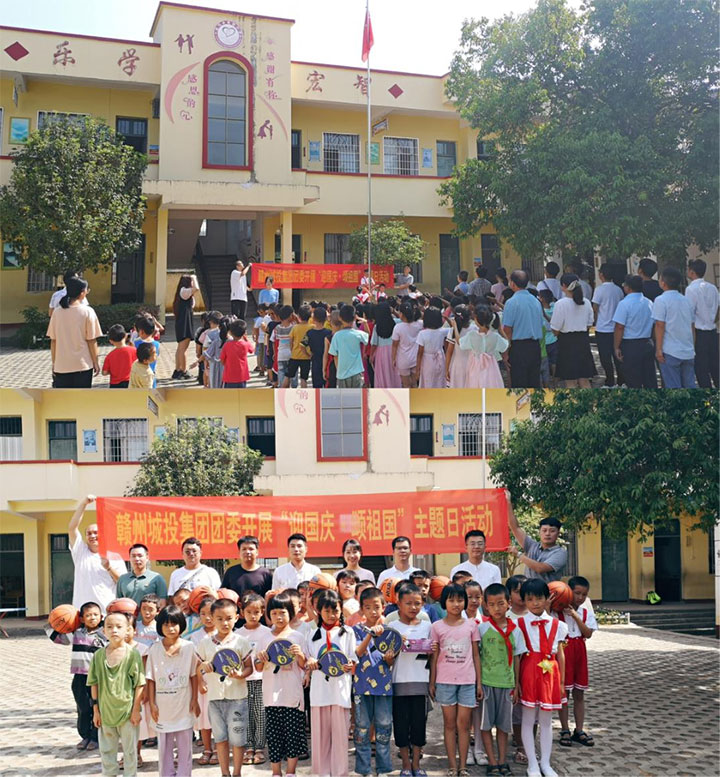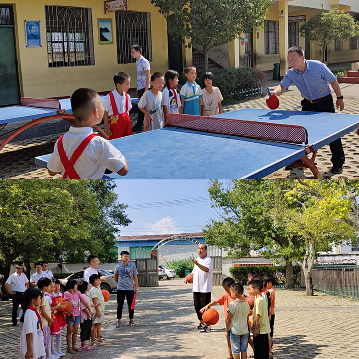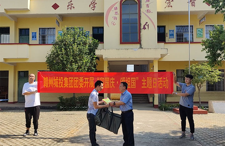 本次活動(dòng)分兩個(gè)階段開(kāi)展。第一階段,以愛(ài)國(guó)主義教育為切入點(diǎn),分別在良田小學(xué)和東山小學(xué)開(kāi)展。黃家偉帶領(lǐng)團(tuán)員與全體師生開(kāi)展升國(guó)旗、唱國(guó)歌活動(dòng),在激昂的歌聲中向國(guó)旗敬禮、向祖國(guó)致敬。隨后,黃家偉代表集團(tuán)黨委向兩所學(xué)校捐贈(zèng)物資,用于改善當(dāng)?shù)剞r(nóng)村教學(xué)條件。在學(xué)生們課間休息時(shí)間,團(tuán)員們還陪伴學(xué)生們上了一堂豐富有趣的體育課。團(tuán)員們還與學(xué)校老師進(jìn)行交流座談,表達(dá)了關(guān)心與寄語(yǔ)。