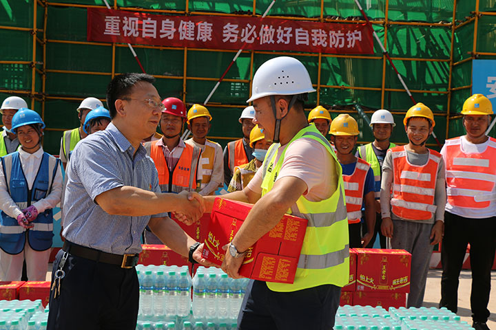 8月26日至27日,集團監(jiān)事會主席陳孝榮、黨委副書記黃家偉、財務(wù)總監(jiān)梁曉斌等帶隊,分成5個慰問組,分別來到蟠龍大橋、鳳崗嘉苑住宅小區(qū)、人才小鎮(zhèn)住宅小區(qū)一期等工程項目工地走訪慰問高溫作業(yè)一線職工,為他們發(fā)放西瓜、涼茶、礦泉水等解暑物品,送來一絲清涼;關(guān)心詢問他們的身體情況和工作困難,囑咐他們在高溫工作時勞逸結(jié)合、自我調(diào)節(jié),建立、落實錯時工作制,做到合理安排工作時間,盡可能避開高溫時段,防止高溫中暑,確保施工安全和身體健康。工程管理公司、生態(tài)投資公司有關(guān)負責人以及集團工會、文化宣傳部相關(guān)人員參加慰問。