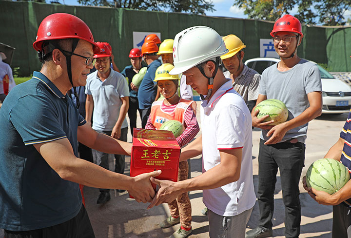 “感謝集團工會的關(guān)懷,這幾天天氣都是30多度,今天收到一份這樣舒爽的禮物,我們特別開心,我們會繼續(xù)堅守好自身的工作崗位,努力把工程項目保質(zhì)量保安全建設(shè)好,如期完工交付。”現(xiàn)場接受慰問的一線職工代表接過防暑慰問品后,用簡單、樸實話語表達了對集團慰問活動的點贊心情。