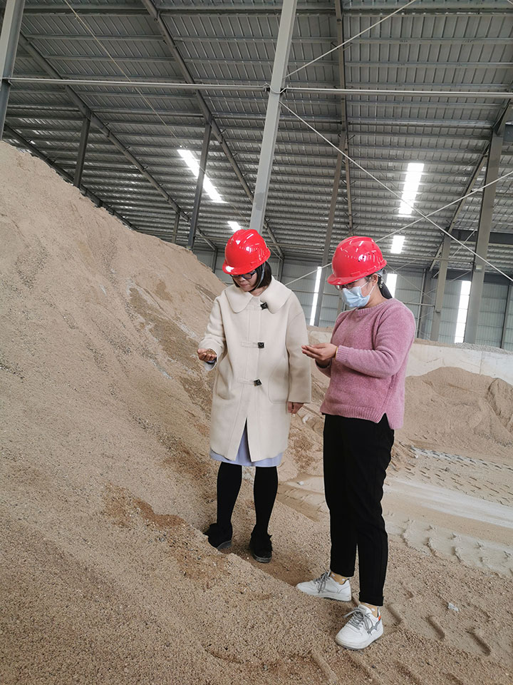 混凝土公司曹惠、曾萍仔細(xì)檢查,嚴(yán)格把關(guān)生產(chǎn)混凝土的原材料,確保混凝土出產(chǎn)品質(zhì)。